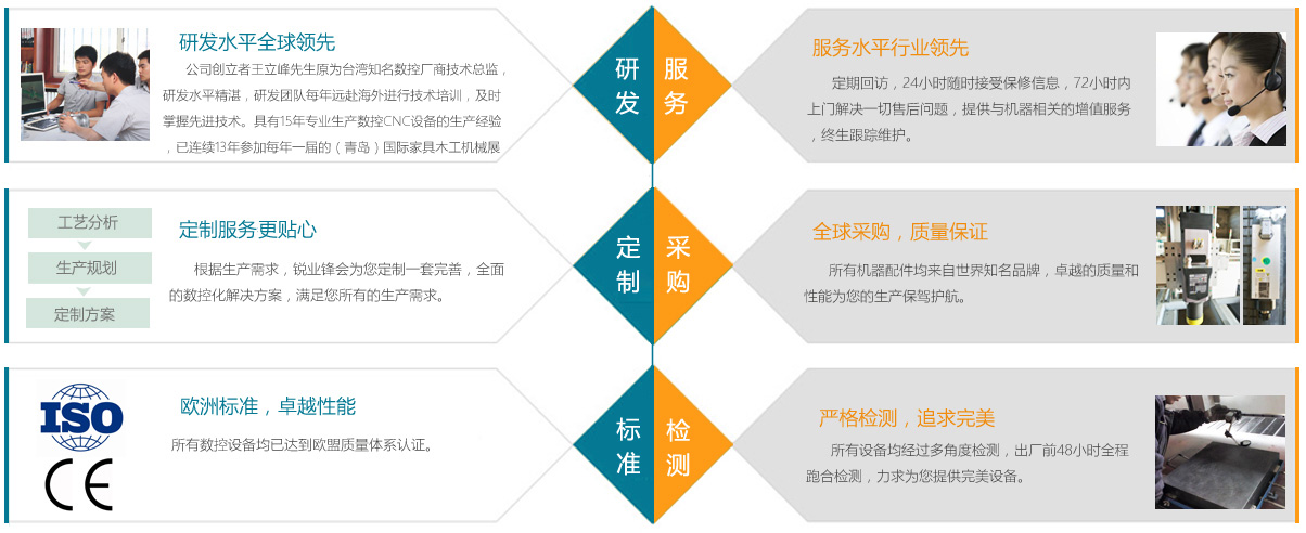 ??????濟南銳業鋒數控設備有限公司是一家具有15年專業生產數控CNC設備的生產經驗,已連續13年參加每年一屆的(青島)國際家具木工機械展。近五年來又專業致力于定制家具生產線,板式家具生產線及各類加工中心的研發,制造。由我公司獨立研發的定制家具實木板式生產線,自動上下料開料加工中心和單臂式數控排鉆五面體打孔加工中心,配備“RAPID.COM”專用軟件,具有生產設計、拆單、快速開料、孔位、無線掃條形碼等先進功能,真正幫你實現數控標準化生產。